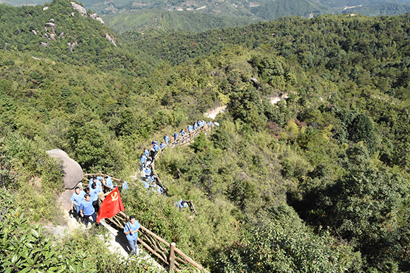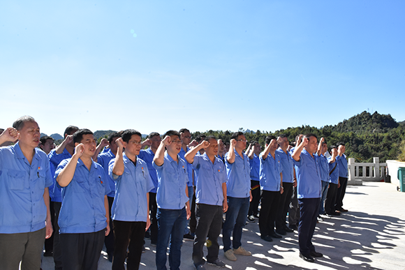 ????大家懷著崇敬的心情,邁上99級臺階,來到車本村的紅軍烈士陵園前敬獻花籃,瞻仰了烈士群雕并向烈士三鞠躬,表達對革命烈士的緬懷和敬意。接著,在陳晉輝同志領誓下,全體黨員重溫入黨誓詞,再次接受黨性的洗禮,表達了為黨的事業奮斗終生的決心。