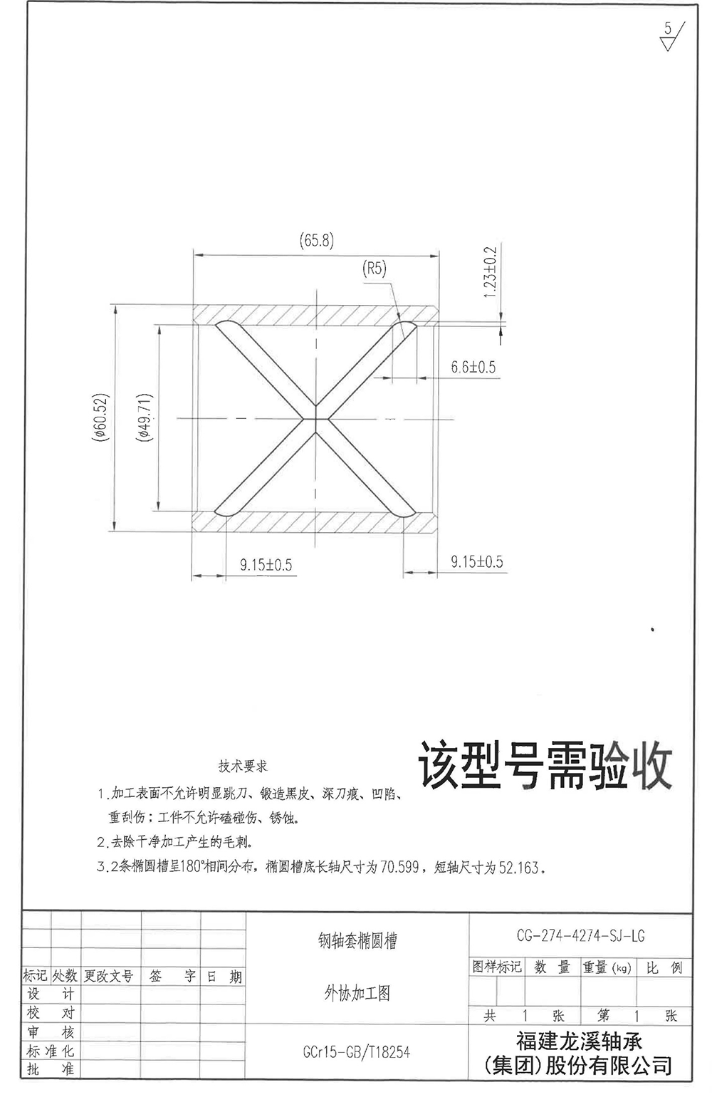 驗收型號的尺寸加工要求如附圖