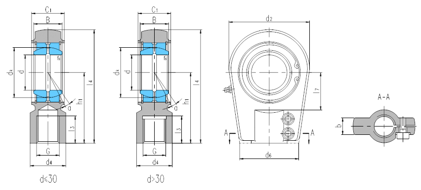 產(chǎn)品特點(diǎn):帶鎖口桿端關(guān)節(jié)軸承由桿端體和向心關(guān)節(jié)軸承GE…ES組裝而成,用擋圈固定,d≤50,桿端體材料是碳鋼,d>50,桿端體材料是球墨鑄鐵,桿端體的內(nèi)螺紋帶有鎖口,配有螺釘緊固;可通過油杯潤滑。