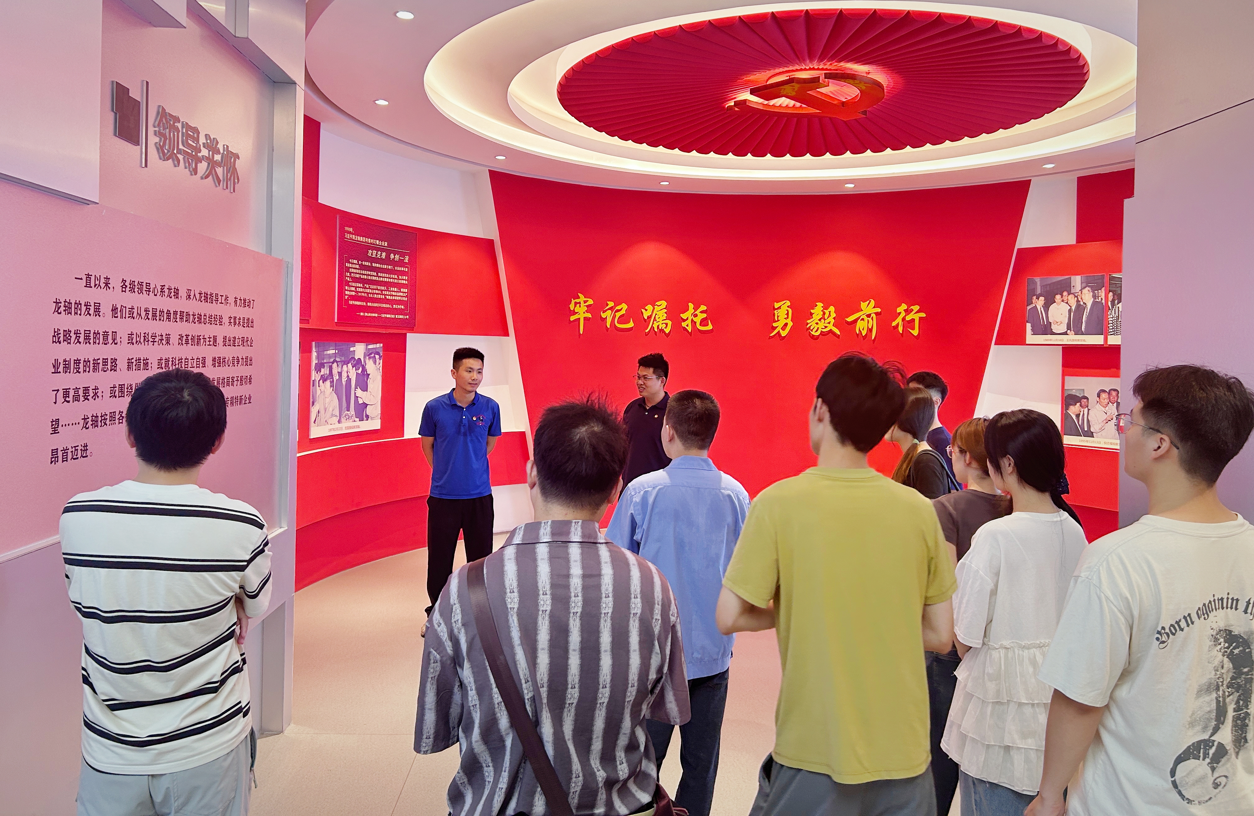 隨后,大家走進龍軸展覽館,珍貴的照片、展品有序陳列,無聲卻有力地展現了公司67年來的發展歷程。團員青年們認真聆聽講解、不時交流感悟,在回溯企業“從無到有、從小到大、從弱到強”的艱辛歷程中,進一步加深了對“求實奮進”企業精神的理解。