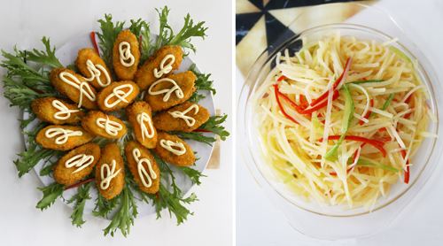 參賽隊員們自帶食材,各顯其能,動作嫻熟,有條不紊,盡顯烹飪能手的風采。十八支參賽隊共烹飪出了18道熱菜和18道冷菜的美味佳肴,他們還為每個菜品起了生動的名字,寓意不同,“荷荷美美”寓意家庭和美幸福;“魚躍龍門”彰顯著對職工、對企業(yè)的美好祝愿;“多彩人生”承載著每個職工對工作生活期盼。不僅創(chuàng)意新穎,而且色澤鮮美,味道純正,女工們用自己精心烹飪的美味佳肴互傳友誼,倡導和諧健康生活。