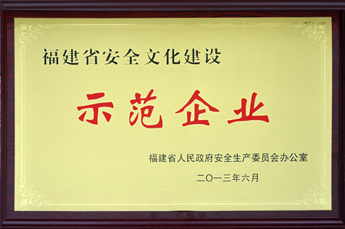 近日,公司被福建省政府授予“安全文化建設(shè)示范企業(yè)”榮譽稱號。這是對我司以安全文化促管理,以安全文化促發(fā)展,努力構(gòu)建安全型企業(yè)工作又一重要肯定?;仡檮?chuàng)建歷程,這是公司全員參與、共同努力的成果。