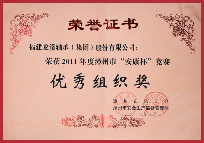 2012漳州年市安康杯優秀組織獎