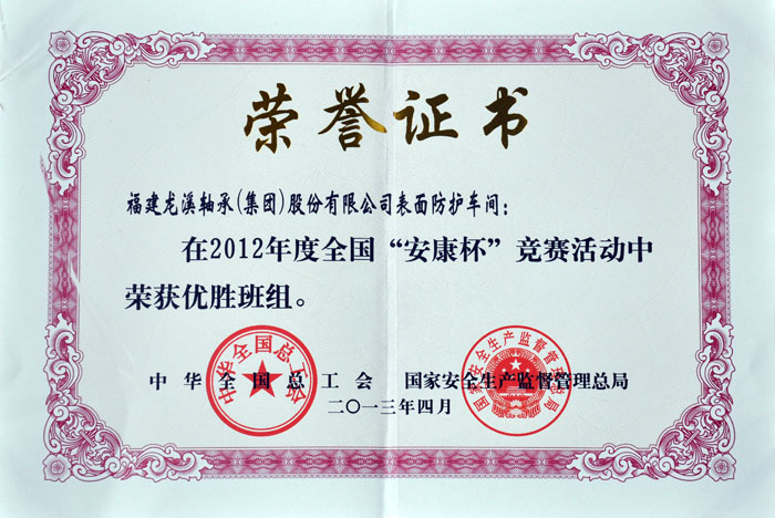 2012年度全國安康杯競賽優勝班組(表面防護)